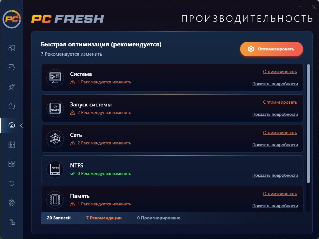 Описание: PC Fresh - это мощный, уникальный инструмент для оптимизации работы Вашего компьютера. Позволяет настроить ПК так, как это делают эксперты, улучшить производительность, изменить скрытые настройки, оптимизировать загрузку компьютера, изменить внешний вид Вашей ОС и многое другое. С ее помощью вы сможете тонко настроить свою ОС, очистить ее от разнообразного мусора, ускорить ее работу и прочее.