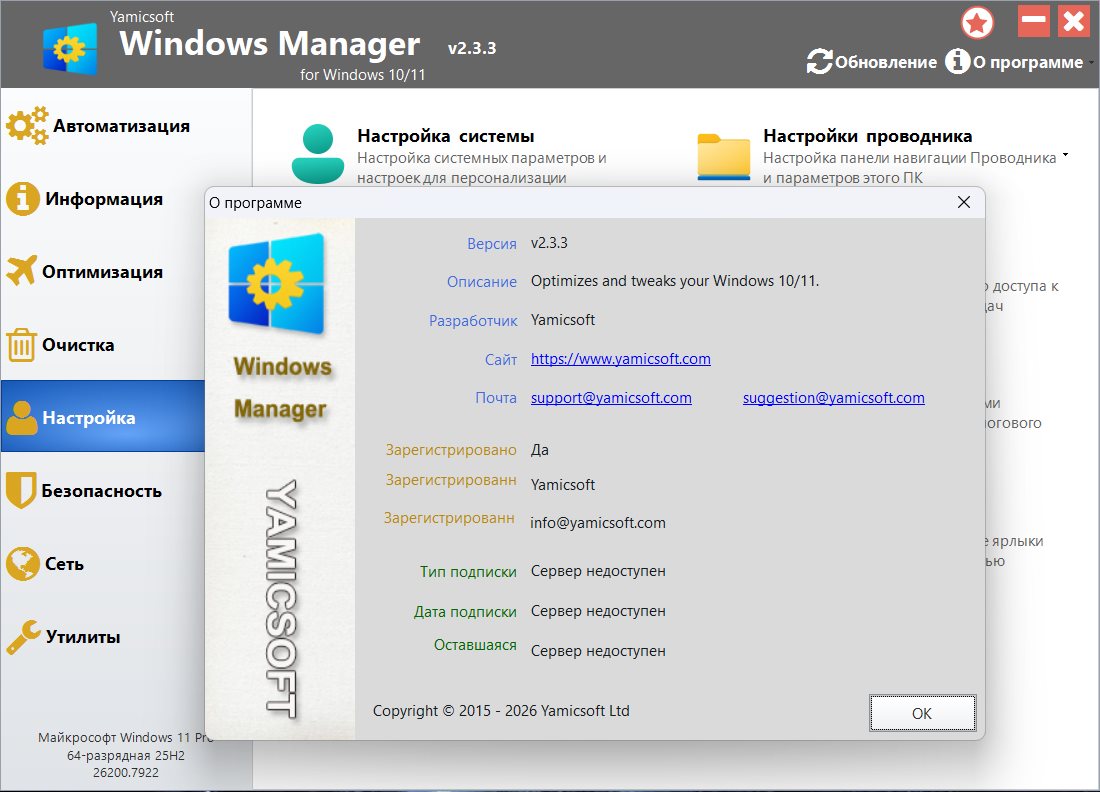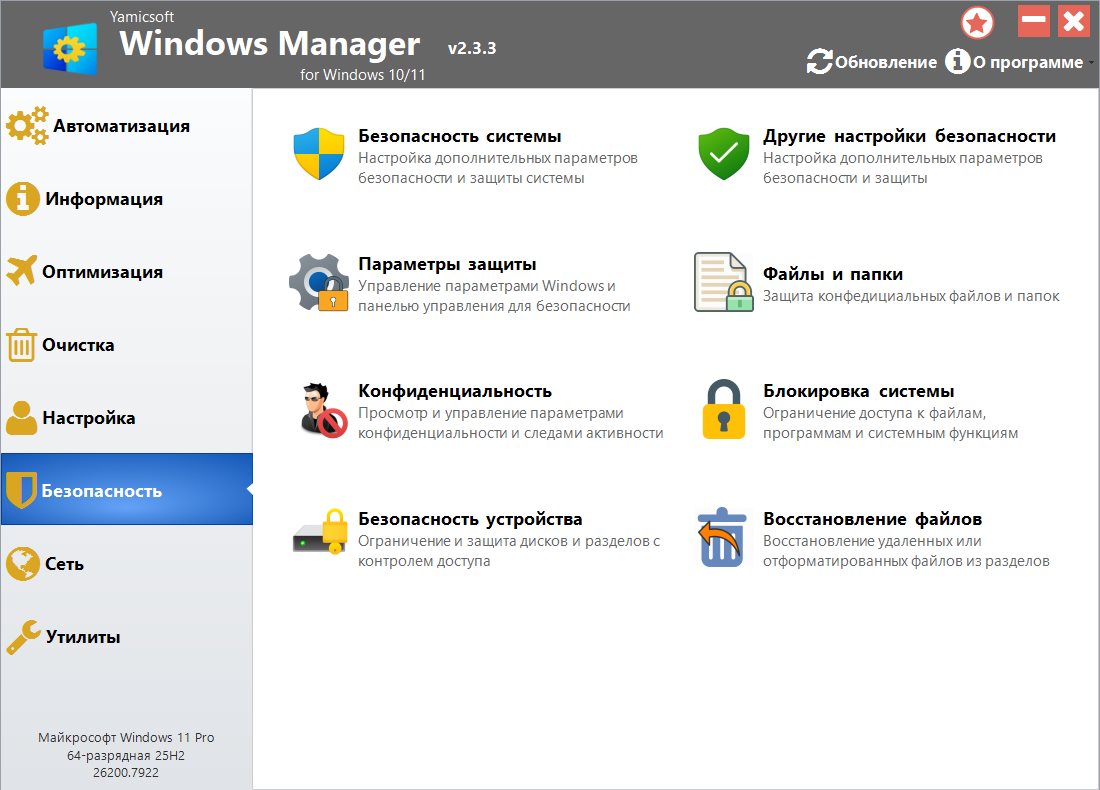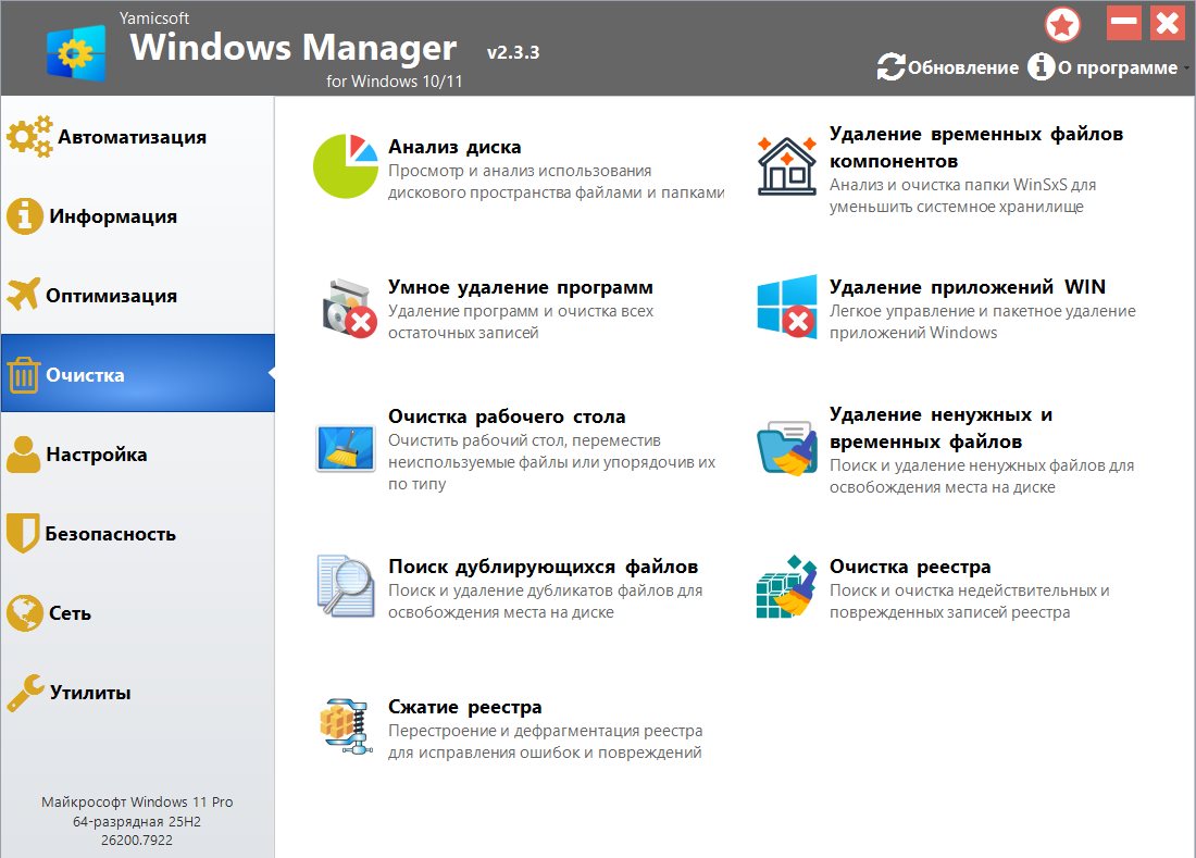 Описание: Комплексное решение для оптимизации, настройки, ремонта и очистки Windows 10/11. Windows Manager - это универсальная утилита для Microsoft Windows 10/11, включающая в себя более сорока различных утилит для оптимизации, настройки, очистки, ускорения и ремонта Windows 10/11, помогающая ускорить работу системы, устранить системные ошибки, повысить стабильность и безопасность, персонализировать вашу копию Windows 10/11 и оправдать все ваши ожидания.